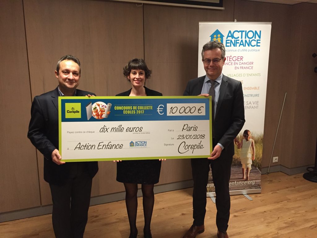 Corepile remet un chèque de 10 000€ à la Fondation Action Enfance